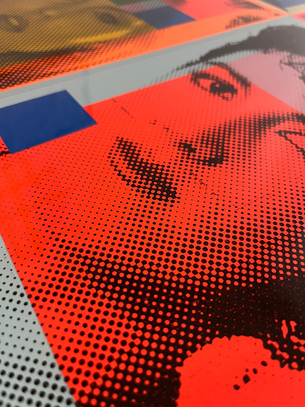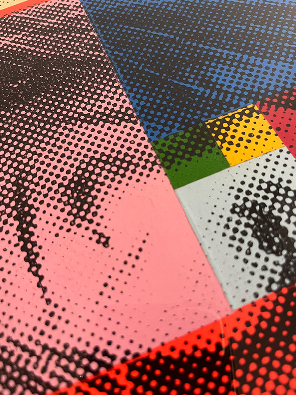 This artwork by Debens is a masterful and intelligent piece that pays tribute to Pop Art while evolving its themes. It’s a visually striking exploration of identity, representation, and the intersection of traditional artistic methods with modern digital aesthetics. The combination of iconic Pop Art techniques with Debens’ signature geometric and deconstructive elements makes it a unique and compelling work.